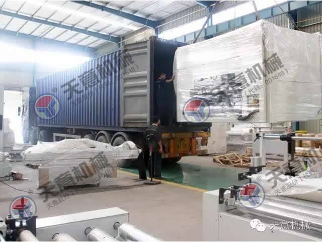 為加快臺(tái)灣綠色建筑建材市場快速發(fā)展,9月20日,天意機(jī)械為臺(tái)灣客戶定制的一套保溫裝飾一體化板生產(chǎn)線成功裝車發(fā)往臺(tái)灣。