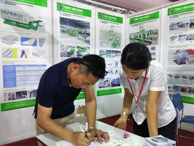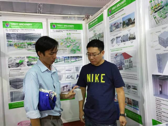 越南是亞洲經(jīng)濟(jì)發(fā)展速度的國(guó)家之一。近年來(lái),越南正加大對(duì)基礎(chǔ)設(shè)施建設(shè)和主要城市居民住宅的改造力度,綠色建筑建材裝備缺口巨大,為適應(yīng)市場(chǎng)需求,天意機(jī)械攜綠色建材設(shè)備參展了此次展會(huì)。展會(huì)期間,外貿(mào)銷售部李經(jīng)理,認(rèn)真對(duì)待每位來(lái)訪的客戶,詳細(xì)向其介紹天意機(jī)械專利產(chǎn)品輕質(zhì)墻板生產(chǎn)線,復(fù)合墻板生產(chǎn)線,保溫裝飾一體化板生產(chǎn)線等產(chǎn)品的優(yōu)勢(shì),以及設(shè)備在東南亞地區(qū)建筑建材市場(chǎng)的影響,展會(huì)現(xiàn)場(chǎng)就有多數(shù)客戶,初步簽訂了輕質(zhì)墻板生產(chǎn)線、復(fù)合墻板生產(chǎn)線加工生產(chǎn)訂單。