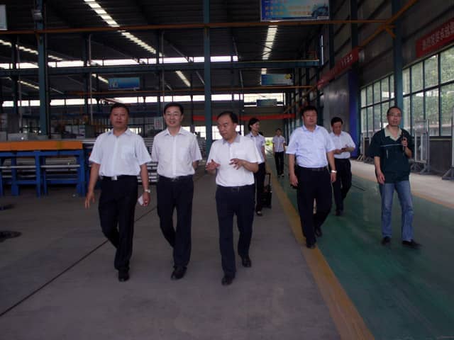 市領(lǐng)導(dǎo)先后參觀了我公司的6A辦公大樓、省級研究中心、體驗館、樣板別墅、集成房屋、設(shè)備生產(chǎn)車間以及鋁型材加工基地。每到一處,市領(lǐng)導(dǎo)都仔細(xì)詢問了技術(shù)與生產(chǎn)等相關(guān)問題。